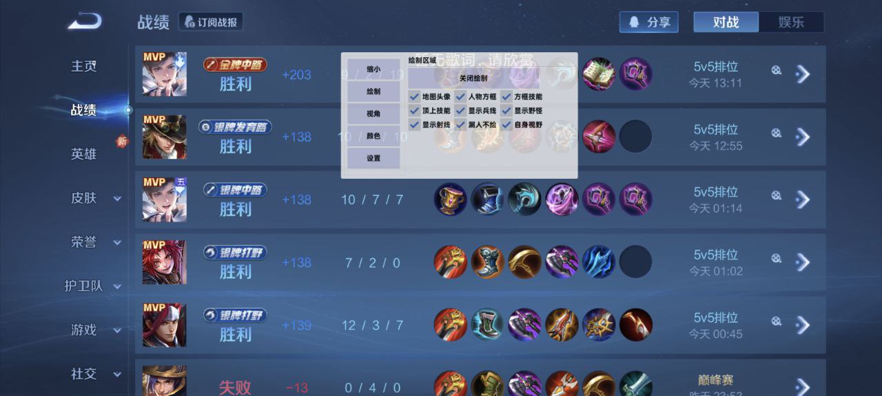 【功能:掩体变色,上帝视角,野怪计时,技能计时,漏视野射线变红,绘制血量,回城绘制,兵线绘制,全奔绘制功能稳到猝死 ,主播同款,巅峰赛过直播 。】
